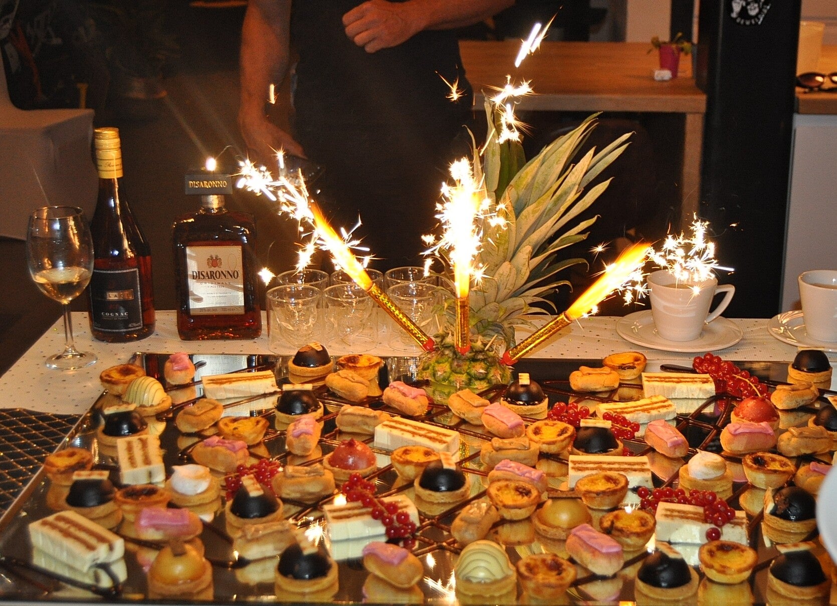 Vaste forfait 150 € voor verplaatsing, bediening van 1 pers, opstellen van buffet en afbreken
