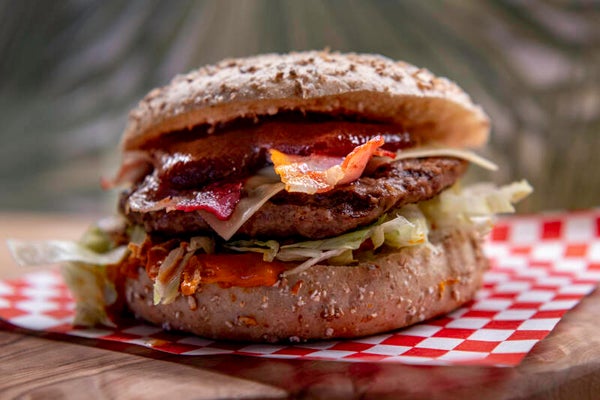 daarna Burger met frietjes en alle sauzen naar wens, Black Angus Halal
