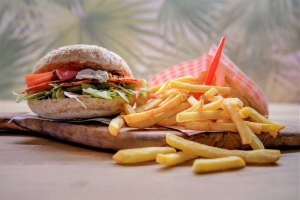 We hebben ook een vegetarische hamburger, deze moet ook op voorhand bestelt worden.